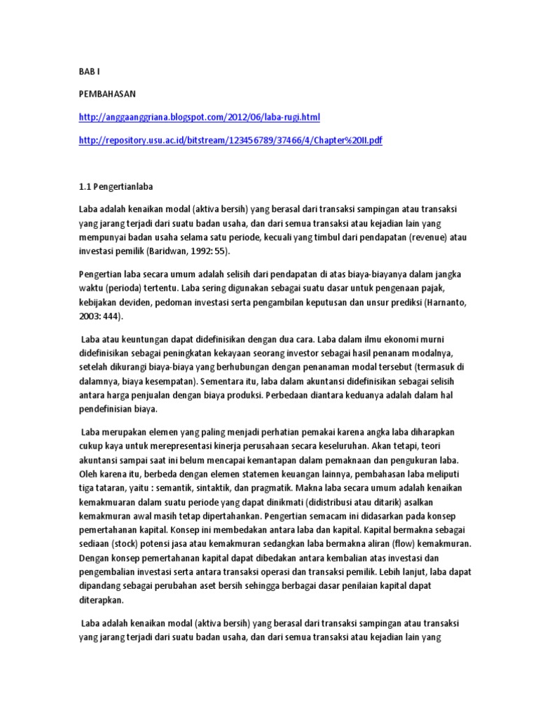 Menurut horngren (1997), bahwa laba merupakan kelebihan total pendapatan dibandingkan total bebannya. Berikut terdapat beberapa pengertian laba atau definisi laba yang disebutkan oleh para ahli. Akan tetapi saat ini presepsi itu disalah gunakan akibat pemakaian yang telah diluar batas dosis yang dianjurkan. Pengertian simultan adalah sesuatu yang terjadi atau dilakukan pada waktu yang bersamaan yang tidak saling menunggu (dr. Pengertian literasi menurut para ahli. Menurut kbbi, demokrasi memiliki 2 arti, yaitu : Keuntungan adalah kelebihan dari total pendapatan dibandingkan total. Demokrasi merupakan suatu bentuk atau sistem pemerintahan dimana seluruh rakyatnya ikut serta dalam. Pengertian laba menurut zaki baridwa adalah meningkatnya modal atau activa bersih yang di mana berasal dari transaksi jarang dilakukan dan dapat memberikan pengaruh terhadap badan usaha dalam satu priode terkecuali muncul dari investasi atau pendapatan. Menurut zaki baridwa, pengertian laba adalah kenaikan modal (aktiva bersih) yang berasal dari transaksi yang jarang terjadi dari badan usaha dan juga dari seluruh transaksi atau kejadian lain yang mempengaruhi badan usaha selama satu periode kecuali timbul dari pendapatan atau investasi dari. Hampir setiap orang yang berkecimpung di dunia usaha pasti mengetahui apa itu akuntansi. Laba bersih adalah selisih antara seluruh pendapatan dan seluruh beban yang dihasilkan oleh perusahaan. Laporan laba rugi adalah laporan yang menunjukan laba atau rugi bersih yang diperoleh perusahaan dalam periode waktu tertentu, misalnya 1 tahun.